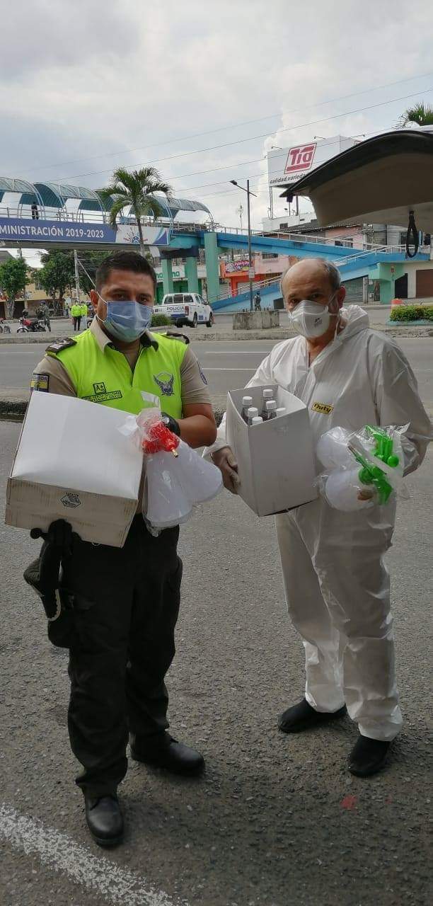 Por encargo del Gobernador del Distrito 4400 Aníbal Robles, el Presidente del Club Rotario La Puntilla entregó al Jefe del Cuartel de Policía de Durán Sr Crnl Daniel Albuja 500 mascarillas quirúrgicas y 250 pares de guantes látex. Tambien entregó al Sr Cap. Santiago Yerovi, para el personal de Policías y Militares que controlan el ingreso y salida del puente en Durán, 500 mascarillas quirúrgicas y 250 pares de guantes látex.